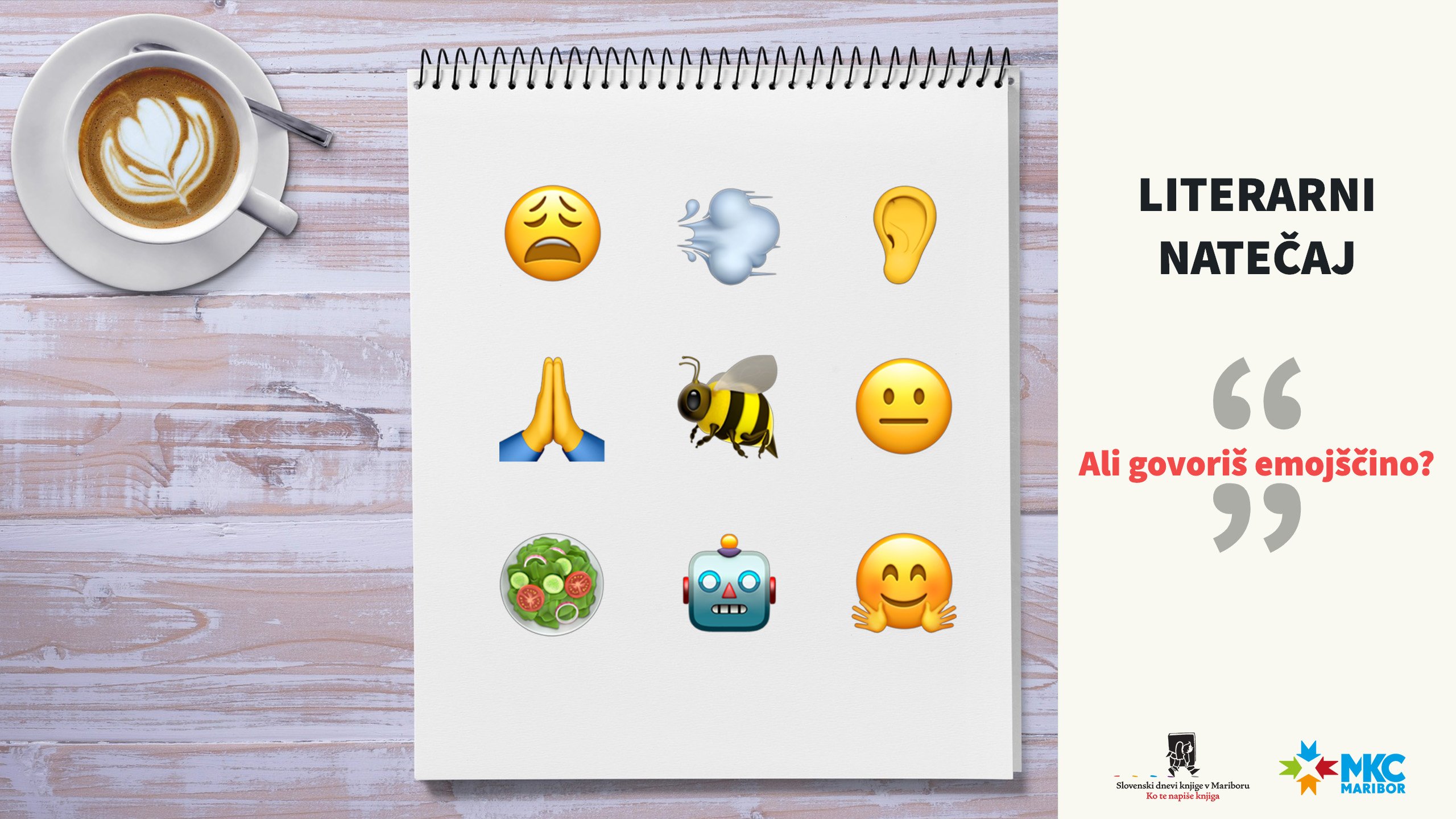 Festival 22. Slovenski dnevi knjige v Mariboru in MKC Maribor razpisujeta 4. nagradni literarni natečaj »Ali govoriš emojščino?« za najboljši prevod pesmi iz simbolnega jezika emoji v slovenščino.