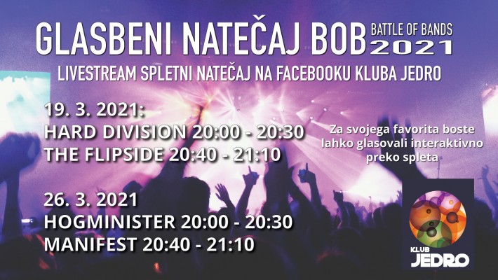 Prvi del - BOB 2021, 19. 3. 2021 ob 20:00, z nastopajočimi HARD DIVISION in THE FLIPSIDE