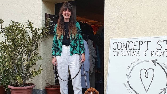 Karmen je mlada modna oblikovalka, podjetnica in samosvoja lastnica edine trgovine z rabljenimi oblačili Kobaridu. V njeni trgovini Reinkarmika ponuja rabljena, vintage oblačila, predelane kose in