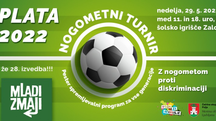 Mladi zmaji znova vabijo na Plato - z nogometom proti diskriminaciji 2022, tradicionalni celodnevni družabno rekreacijski dogodek Mladih zmajev Zalog v Zalogu, ki se bo odvil v nedeljo, 29. 5. med 11