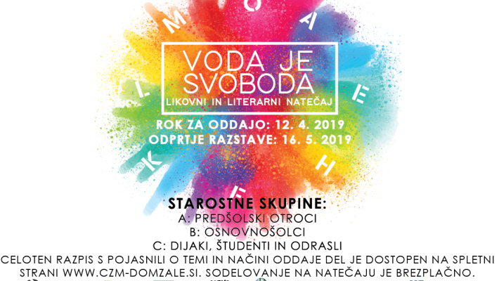 Center za mlade Domžale vabi k sodelovanju na likovno-literarnem natečaju Voda je svoboda. Kjer ni vode, ni življenja. To naj bo vodilo pri pripravi likovnih in literarnih del. Osredotočite se na