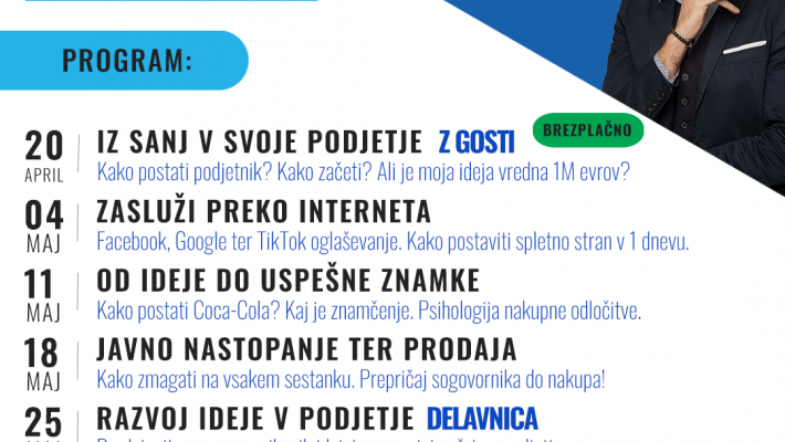 Javni zavod Sotočje Medvode je začel z izvajanjem Podjetniške šole v mladinskem centru Klub Jedro. Delavnice bo vodila izkušen podjetnik in motivacijski govorec Boštjan Vidmar (viralen.si). Prog