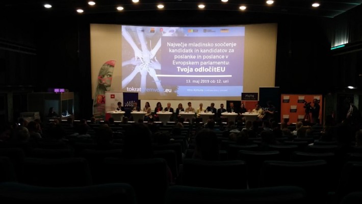 V ponedeljek, 13. maja 2019, je v dvorani ljubljanskega Kina Komuna, potekalo največje mladinsko soočenje kandidatov in kandidatk za poslance in poslanke v Evropskem parlamentu, z naslovom Tvoja Odl