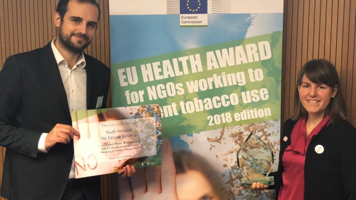 Mladinska zveza brez izgovora Slovenija je v Bruslju prejela nagrado "EU Health Award" za leto 2018, ki je bila letos posvečena delu najboljših nevladnih organizacij na področju tobačne k