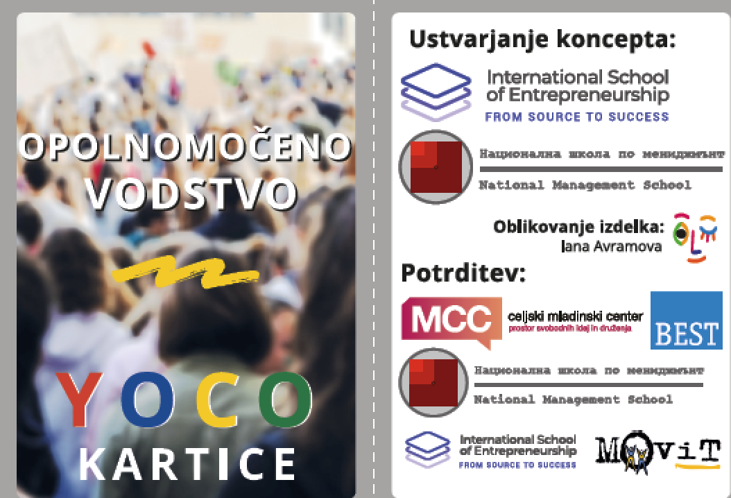 YOCO kartice so bile razvite kot interaktivno orodje, ki ga mladinski delavci lahko uporabljajo pri usposabljanju mladinskih vodij. Kartice so osredotočene na razvoj kompetenc z področij: opolnomočeno vodenje, samozavedanje in sistemsko zavest. Komplet vsebuje pet kategorij kartic. Vsaka kategorija simbolizira ključno področje vodenja in vsebuje 15 kartic. Pet kategorij se lahko uporablja skupaj ali ločeno; v skupinskem ali individualnem učnem procesu, odvisno od konkretnega konteksta in cilja mladinskega dela
