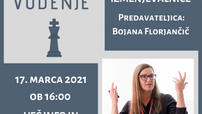 17. marca 2021 bodo z gostjo Bojano Florjančič spoznali pomembnost dobrega vodenja in kakšno vlogo ter nalogo ima vodja. V sklopu tokratnje delavnice bodo raziskovali rešitve na naslednje dileme: