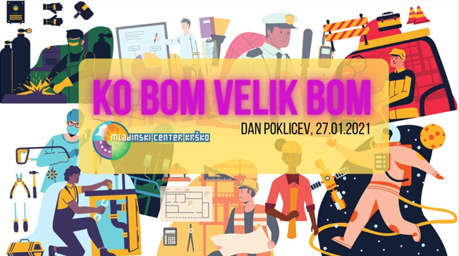 Leti 2020 in 2021 sta nekaj posebnega, na pot nam postavljata številne izzive in nove načine dela. V Mladinskem centru Krško ponavadi Dan poklicev organizirajo v živo in k sodelovanju takrat povabijo osnovne šole oziroma devetošolce, ki se odločajo za nadaljnje šolanje in poklicno pot ter jim pomagajo pri odločitvi s predstavitvami različnih poklicev, ki jih zanimajo.