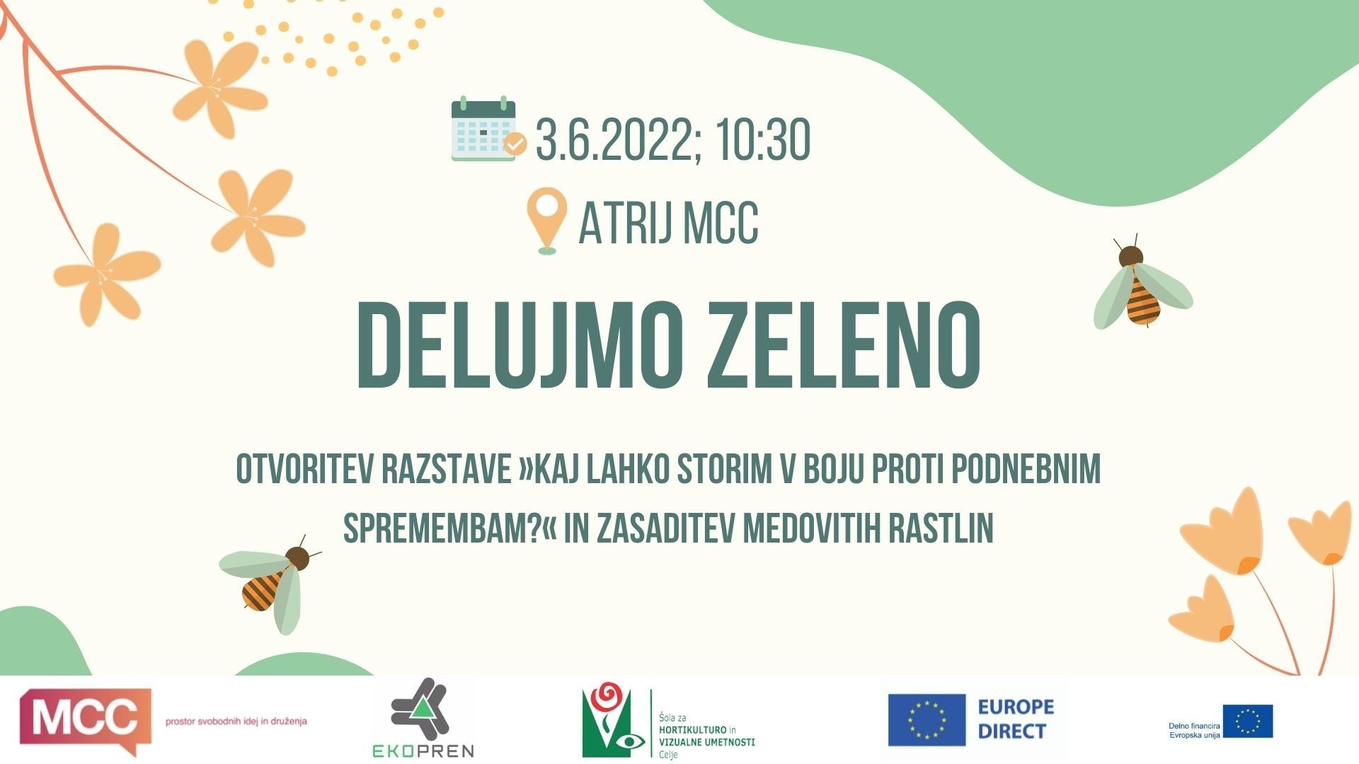 Vljudno vabljeni na dogodek »Delujmo zeleno« v organizaciji Informacijske točke EUROPE DIRECT Savinjska, ki deluje v okviru Celjskega mladinskega centra. Dogodek se bo odvil v atriju Celjskega mladinskega centra, v petek, 3.6.2022, s pričetkom ob 10.30 uri.