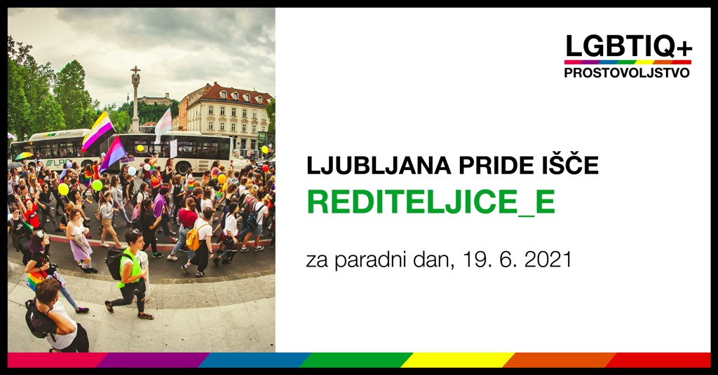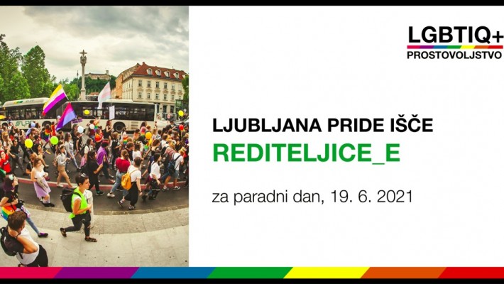 Društvo Parada ponosa išče osebe, ki bodo v soboto, 19.6.2021 podpirale izvedbo parade ponosa. Delo vključuje skrb za nemoten potek dogodka, pregled nad dogajanjem do zaključka in uvodni sestanek s koordinatorko_jem rediteljic_ev.