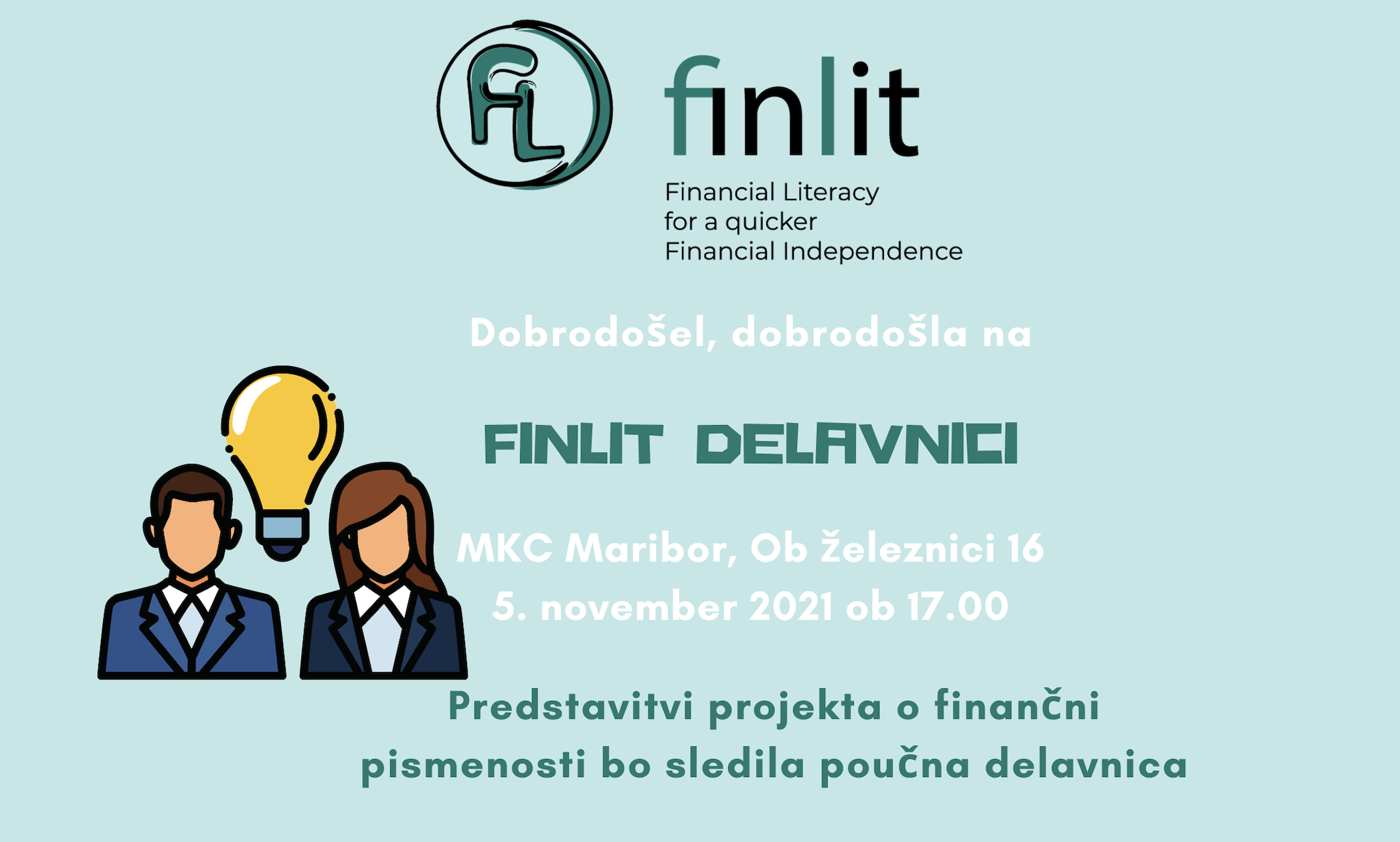 Osrednja ciljna skupina projekta FinLit so mladi med 18. in 24. letom starosti, vendar pa je uspešnost izvedbe neposredno povezana tudi z učinki na ostale deležnike. Slovenska partnerja, MKC Maribor in MIITR zato organizirata prvi multiplikativni dogodek za vse zainteresirane deležnike o finančni pismenosti - mlade, mladinske delavce, odločevalce, širšo javnost, medije. Dogodek se bo odvijal 5. novembra 2021, med 17. in 19. uro na MKC Maribor (Ob železnici 16, 2000 Maribor). Po začetni predstavitvi projekta in dela na aktivnostih, bomo skupaj z udeleženci izvedli poučno delavnico na temo finančne pismenosti.