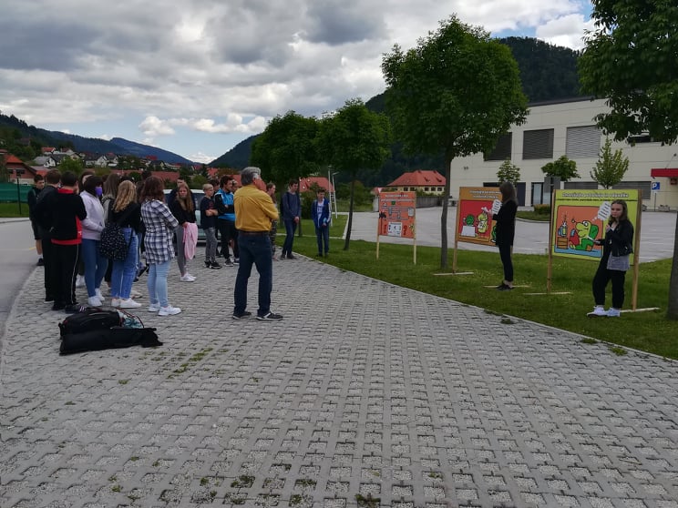 Razstava »Kaj lahko storim v boju proti podnebnim spremembam« je bila postavljena v neposredni okolici mladinskega centra Dravograd, kjer se nahaja tudi športni park, v katerem je v popoldanskem času veliko obiskovalcev. Mimo razstave poteka pot do pokopališča, katera je aktualna krožna pešpot. Razstavo so si ogledovali mimoidoči, obiskovalci programov mladinskega centra ter obiskovalci športnega centra.