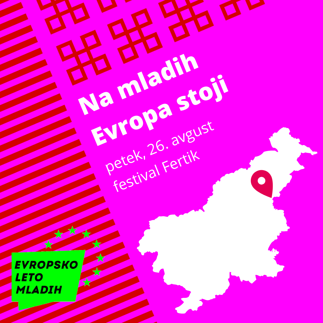 Predstavništvo Evropske komisije v Sloveniji in Mladinski svet Občine Rogaška Slatina te vabita na EVROPSKO LETO MLADIH V ROGAŠKI SLATINI Na mladih Evropa stoji v petek, 26. avgusta 2022, med 17.00 in 20.30 na prizorišču festivala Fertik, Smučišče Janina v Rogaški Slatini.
