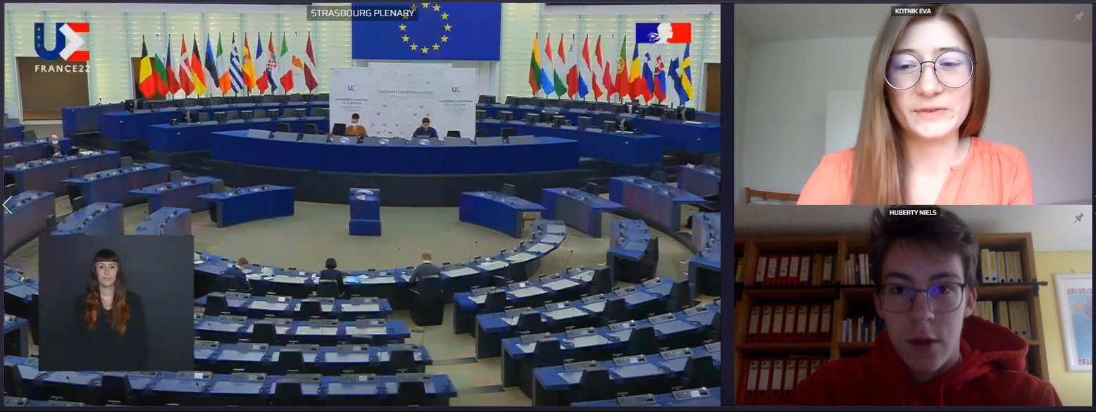 V sredo, 26. 1. 2022 se je evropska mladinska konferenca zaključila s predstavitvijo povzetkov sredinih delavnic. Skupaj z Nielsom, mladinskim delegatom iz Luksemburga, sta predstavila delo s področja aktivacije in opolnomočenja mladih. Govorila sta o tem kako predstavniki mladih povezujejo mladino z vizijo Evropske Unije in si prizadevajo za ustvarjanje priložnosti za njihovo aktivno participacijo v ustvarjanju le-te. Samo opolnomočenje in informiranje mladih torej ni dovolj. Zato sta izpostavila tudi pomen ustvarjanja priložnosti za aktivno participacijo mladih pri odločitvah, ki ne zadevajo le njihove temveč tudi prihodnje generacije. Pomembno je torej, da so mladi vključeni v demokratične odločevalske procese na vseh nivojih (od lokalnega do mednarodnega) in da ne gre le za “podeljevanje žetonov” (ang. tokenism), torej informiranje, posvetovanje in vplivanje le nekaj izbrancev. Trenutno veljavni mehanizmi mladim namreč omogočajo le svetovanje, pri čemer so vse odločitve še vedno v rokah tistih, ki so nosilci moči. Zato sta z Nielsom izpostavila tudi potrebo po optimizaciji že obstoječih mehanizmov participacije in se zavzela za povečanje njihove dostopnosti in vključujočnosti, da bi tako lahko spodbujali raznolikost in enakopravne priložnosti za vse. Da bi vse to lahko uresničili je ključno skupno delovanje vseh, tako (izvoljenih) predstavnikov kot tudi ostalih državljanov in mladih. Skupaj moramo braniti skupne vrednote, človekove pravice in pravne države.
