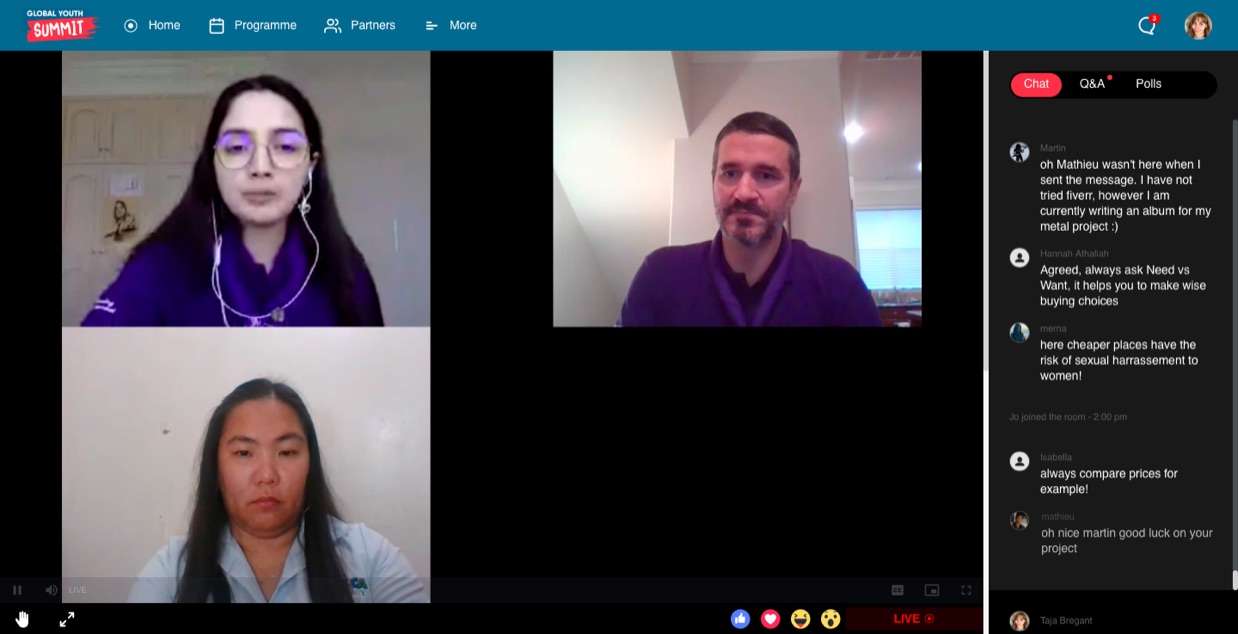 Vsi spletni seminarji so bili odlični, moj najljubši pa je bil “Achieving policy change from the inside”, ki so ga vodile izjemne mlade ženske: Jayathma Wickramanayake, predstavnica generalnega sekretarja OZN za mlade; Djuna Bernard, mlada političarka iz Luksemburga, in Safaath Ahmed Zahir, ustanoviteljica nevladne organizacije Women and Democracy.