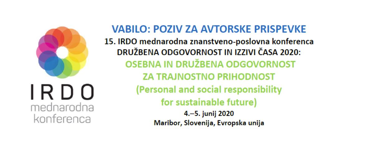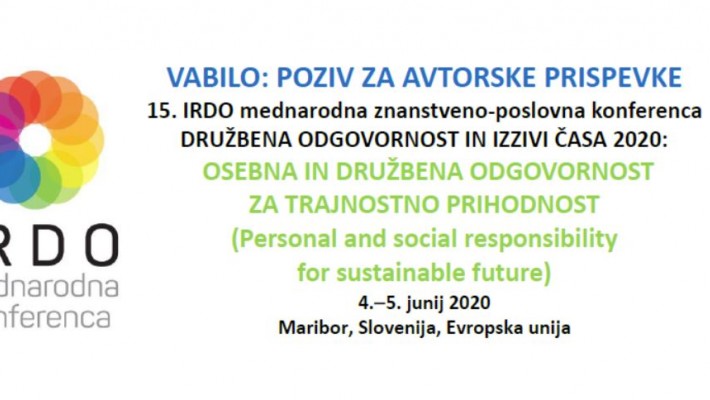 4. in 5. junija 2020 bo v Mariboru potekala že 15. IRDO mednarodna znanstveno-poslovna konferenca "Družbena odgovornost in izzivi časa 2020". Organizatorji vabijo avtorje prispevkov k sodelovanju.