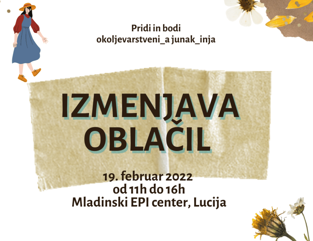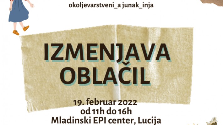 V soboto, 19. februarja, bodo v EPI Lucija pripravili izmenjavo oblačil. Dogodek bo potekal od 11h do 16h in je namenjen mladim od 13 do 25 let.