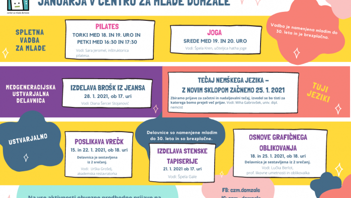 Novo leto, nove aktivnosti! Tudi januarja bo v Centru za mlade Domžale pestro.