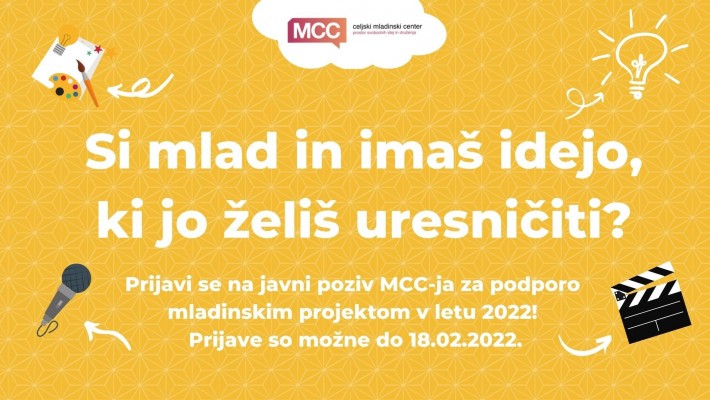 V Celjskem mladinskem centru so tudi letos objavili poziv za podporo mladinskim projektom v letu 2022. Na javni poziv se lahko prijavijo mladi posamezniki (mladi stari od 15 do 29 let) ali neformalne skupine mladih (člani skupine morajo biti stari od 15 do 29 let).
