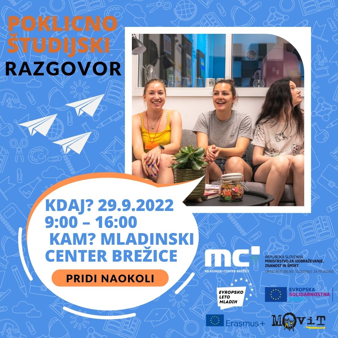 V sklopu Kariernega sejma bodo v sejni sobi Mladinskega centra Brežice potekali tudi poklicno študijski razgovori, z mladimi z različnih študijskih smeri, ki bodo mladim v kratkih razgovorih predstavili svojo izobraževalno pot, kako poteka študij, zakaj so se odločili za ta poklic ipd. Tako bodo mladi mladim, na interaktiven način, s pomočjo zanimivih metod ipd. predstavili svoje študijske smeri, jim s tem približali študijske programe in olajšali izbor študija.