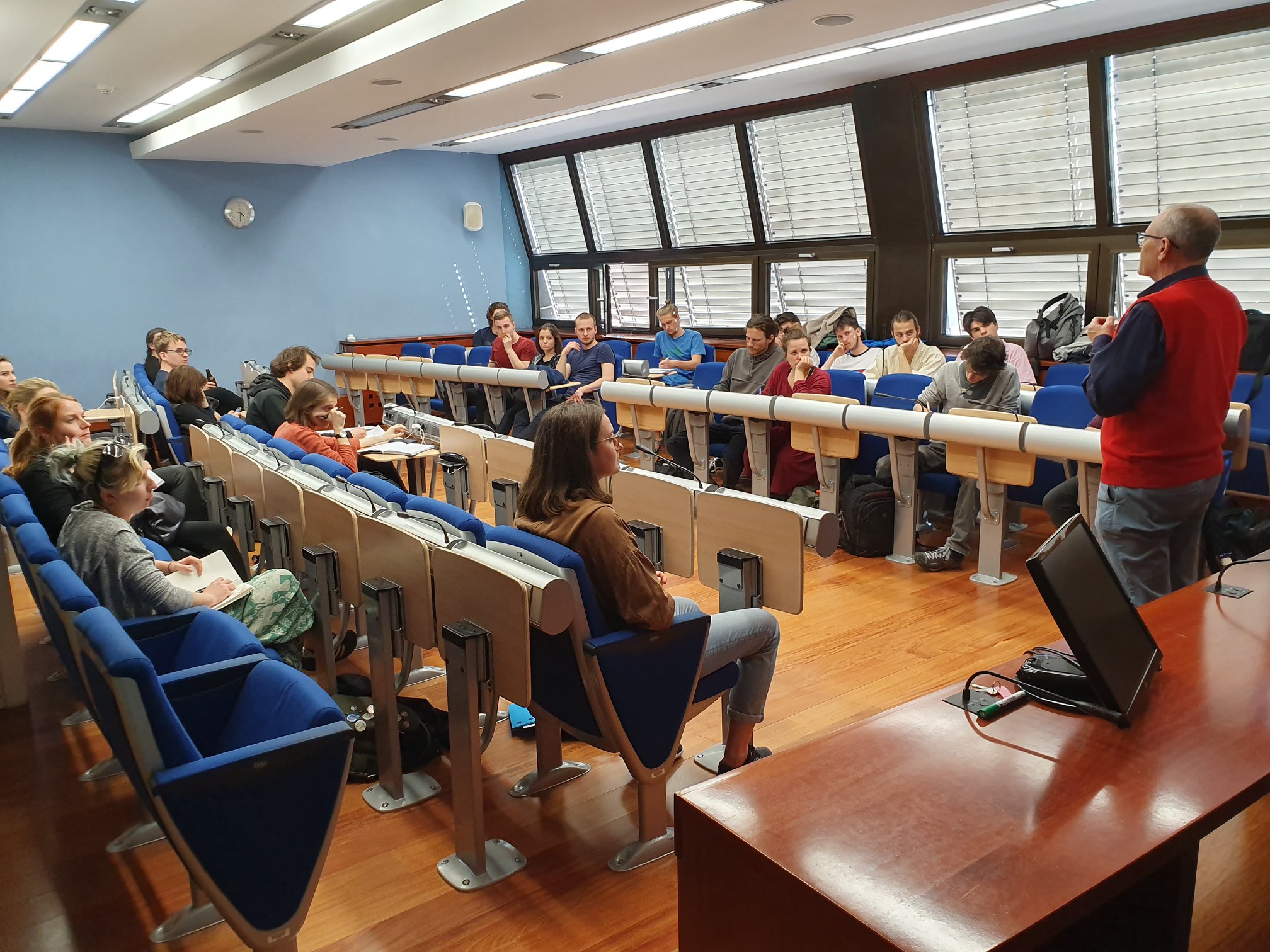 Predaval je dr. Lev Kreft, upokojeni profesor estetike in filozofije športa, ki je poslušalcem pripovedoval o zgodovini evropske misli in teorije od 17. stoletja naprej. Dotaknil se je modernosti, ko je bilo »vse, kar je bilo novo, dobro« in »tudi slabo novo boljše od dobrega starega«, pa postmodernosti, sodobnosti in vseh različnih poimenovanj za današnji čas s predpono post, ki je vmes postala že obrabljena. Hkrati pa kaže željo zapustiti nekaj, kar je bilo, in izkazuje nezmožnost dejansko izpeljati omenjeni odhod. Gre za značilnost časa v prehajanju, kar pomeni, da bi današnji čas, v katerem živimo, tudi zato lahko opisali kot tranzicijskega. Pri takšnem času pa se nam pogosto porodi vprašanje, od kod odhajamo in kam gremo.