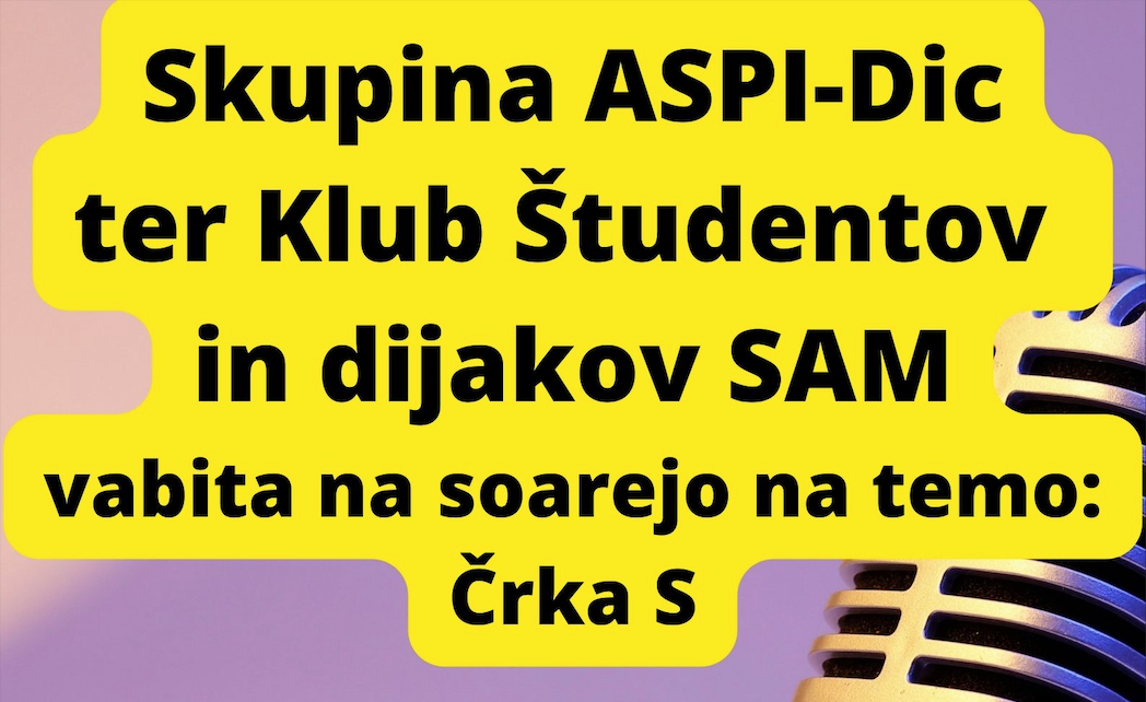 Salvete! Tako je navzoče pozdravil voditelj soareje, ki je dne 27.5. potekala v Dijaškem domu Ivan Cankar, kjer ima prostor za svoje delovanje Klub študentov in dijakov SAM. Soarejo je organiziral Klub SAM v sodelovanju s projektno skupino ASPI-Dic in ker je to že tretji tovrstni dogodek, lahko rečemo, da postaja branje tekstov na določeno temo stalnica, s katero Klub SAM povezuje svoje člane ter jih povabi v debato. Tokrat torej – črka S. Zato Salvete! Zato Sreča. Zato Smrt. Zato Skupnost. Ne nazadnje zato tudi plesni Super Srečni Solo. In obilica Sadja S Smetano, s katero se je tema soareje lepo zaokrožila tudi v smislu pogostitve.