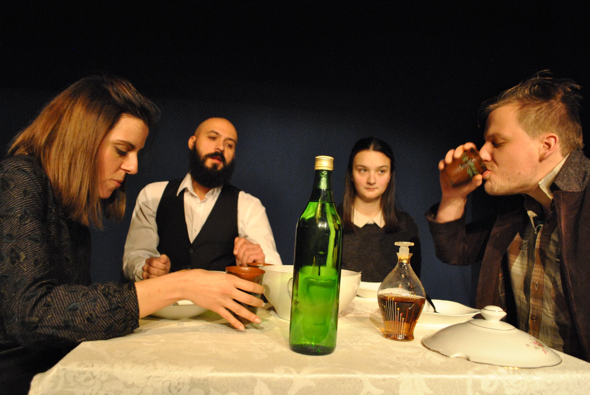 Monodramo so iz angleščine sprva prevedle in priredile za dramo s štirimi igralci in igralkami, kasneje pa tudi realizirale.