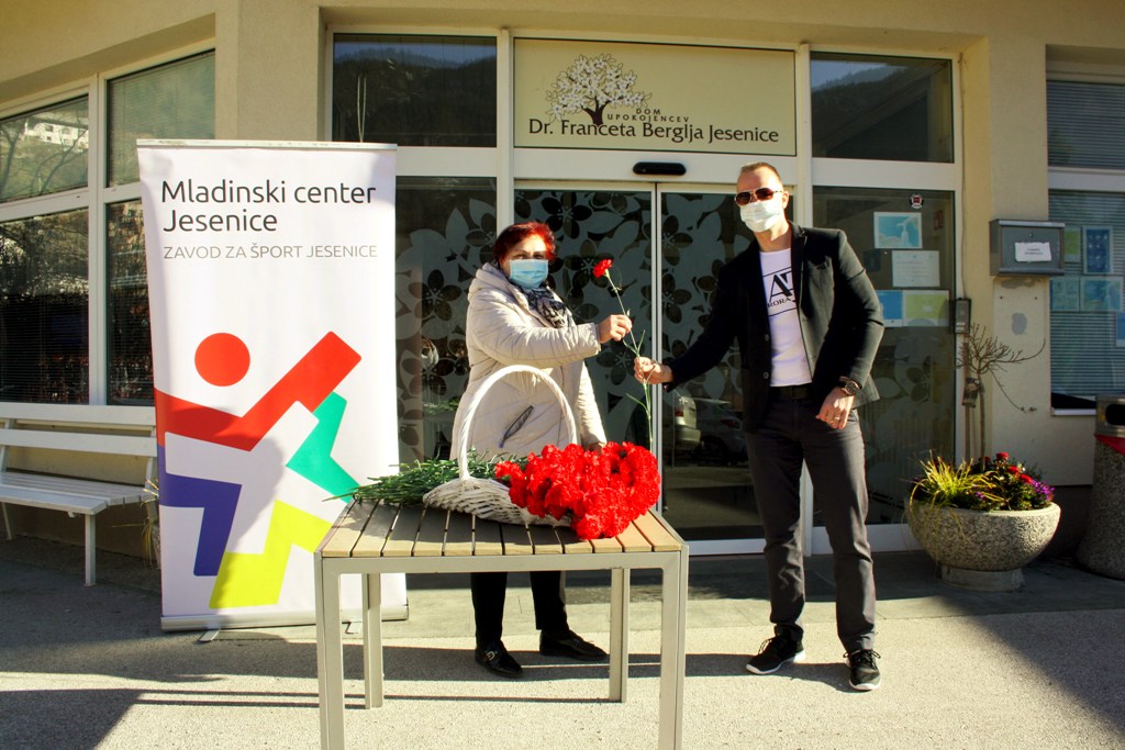 V okviru medgeneracijskega sodelovanja je ekipa Mladinskega centra Jesenice ob mednarodnem dnevu žena pripravila posebno ulično akcijo obdarovanja žensk z rožicami. Tokrat se mladi niso sprehajali po jeseniških ulicah in obdarovali mimoidočih, ampak so posebno pozornost namenili oskrbovankam Doma upokojencev Dr. Franceta Bergelja Jesenice in jim prinesli cvetje.
