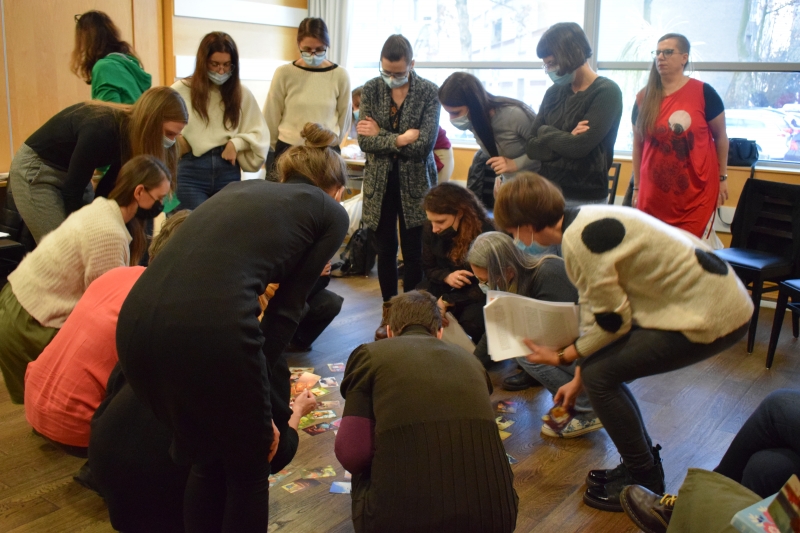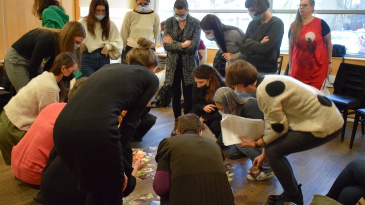 Dr. Avi Goren-Bar, klinični psiholog, art terapevt in supervizor se je pridružil preko aplikacije Zoom in udeležence popeljal skozi analizo ene izmed zgodb mladostnic, ki je opisovala svoje občutke v času 14 – dnevne izolacije. Najprej nam je orisal glavne koncepte Jungove teorije, potem pa se je osredotočil na izolacijo, ki je bila izpostavljena v zgodbi mladostnice. Izolacija je lahko zelo huda kazen, saj smo v osamitvi prisiljeni raziskovati svoje notranje dogajanje, s čimer se podajamo v neznani svet nezavednega, ki je lahko zelo neprijeten. Predavatelj je kot odgovor na dilemo poudaril pomen povezovanja z našim avtentičnim sebstvom, kar lahko storimo skozi dialog med zavednimi in nezavednimi deli sebe. Udeleženci so ta dialog poskusili vzpostaviti preko ustvarjanja z barvami. Skozi nastale slike so iskali rešitve na zastavljeno dilemo in vzpostavljali dialog med egom in sebstvom.