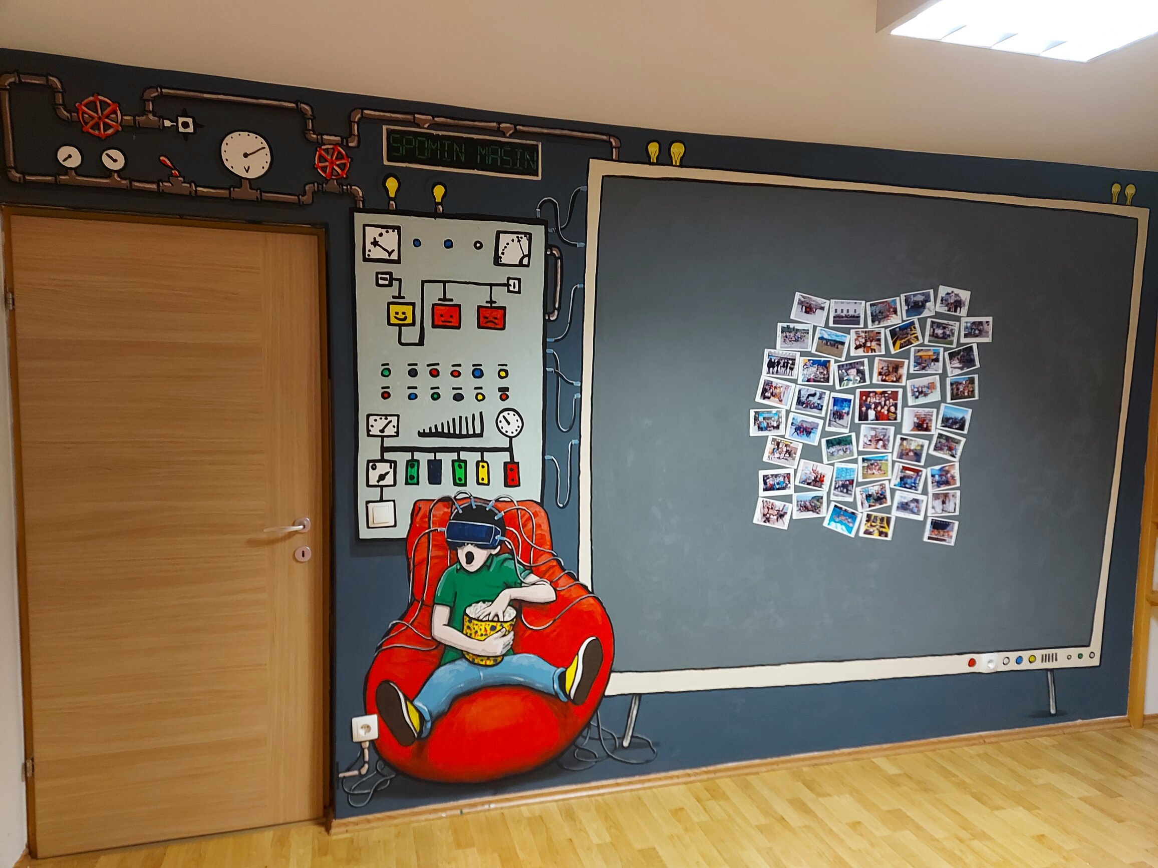 Domišljija udeležencev Mladinskega dnevnega centra Bok ne počiva. Nov poligon za izražanje kreativnosti so našli kar v eni od sob centra, kjer so veliki prazni steni dali nov izgled, in tudi pomen. Za njimi so trije likovni popoldnevi, ki so jih pod mentorstvom slikarja Mohorja Kejžarja popeljali od snovanja ideje pa vse do končne poslikave. Njihov SPOMIN MAŠIN jih bo tako dnevno spominjal na vse skupne avanture, ki so jih preživeli v preteklih 10 letih in tudi tiste, ki jih še bodo. Prostora je še veliko, tako v praksi kot na steni.