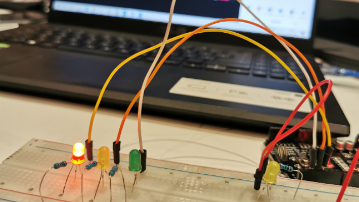 Na delavnici STOP! Sveti rdeča., so udeleženci poleg programiranja spoznali še osnove elektronike. Spoznali so mikrokrmilnik Arduino, platformo za njegovo programiranje Arduino IDE ter izdelali pravi semafor! Vsak udeleženec delavnice je tudi poslal svojo kodo za idealen semafor in ob testiranju kod na mikrokrmilniku so ugotovili, da so naloge odlično opravili.