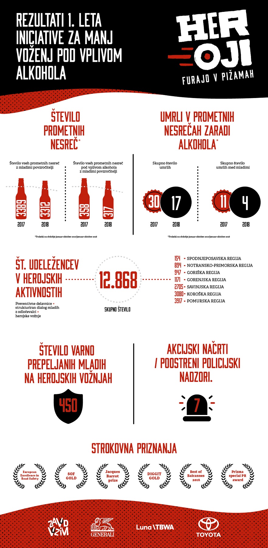 December je za mnoge magični čas, ko zaključujemo narejeno in se hkrati veselimo česa novega. Zadnji mesec v letu mladim ponuja ogromno zabave, ko se lahko poveselite z bližnjimi in se želite sprostiti. In prav je tako. Vseeno pa vas želimo ob tem opozoriti, da je ravno to obdobje zaradi prometnih nesreč, ki se zgodijo zaradi alkohola, še vedno med najbolj kritičnimi, o čemer z iniciativo "Heroji furajo v pižamah" mlade ozavešča tudi Zavod Vozim, Zavarovalnica Generali in Toyota Slovenija.