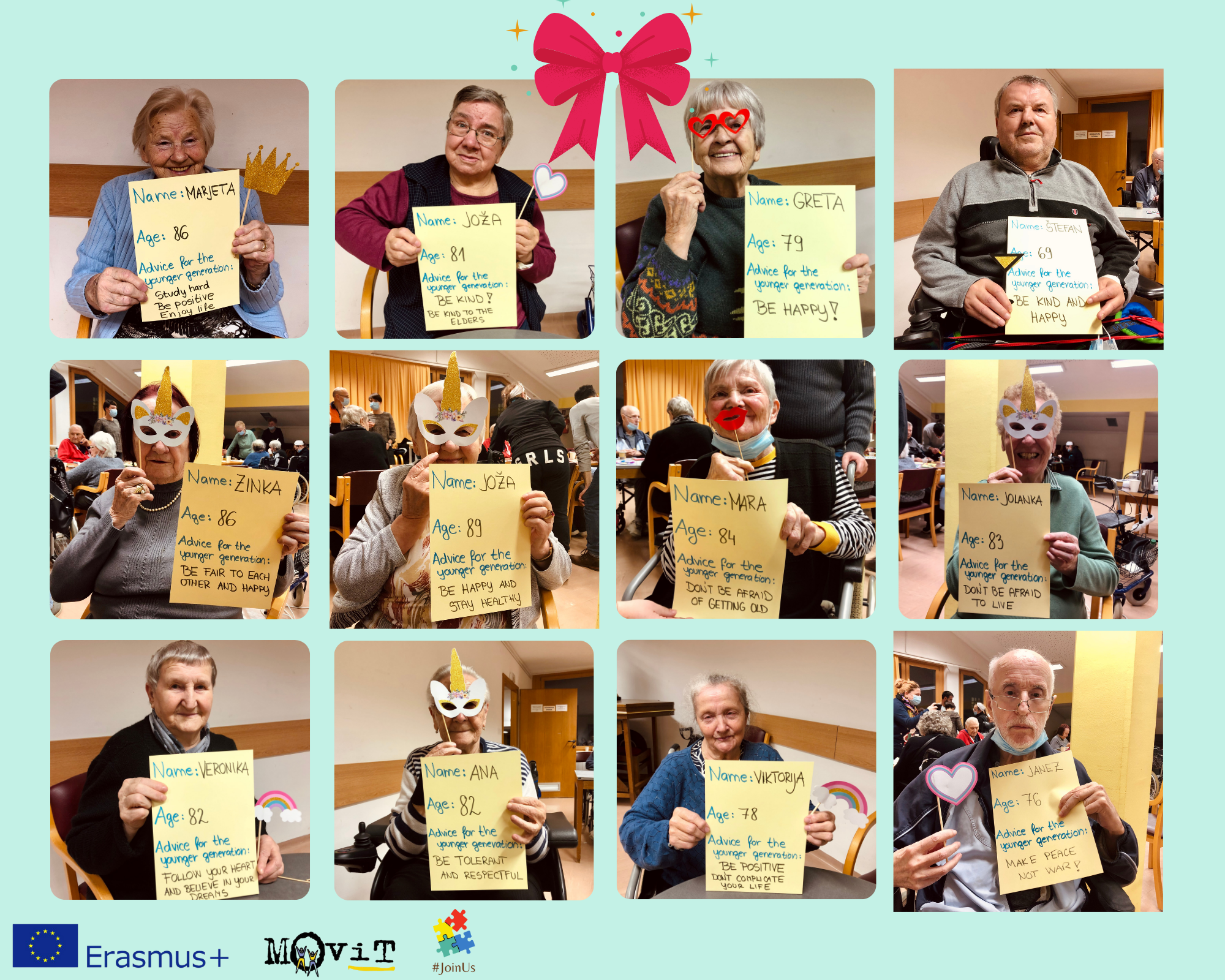 Njihovi člani in udeleženci projekta so pripravili tudi foto kotiček, kjer so stanovalci doma z mladimi delili svoje nasvete. S fotografijami želijo širiti strpnost, raznolikost in pokazati kako pomembno je, da ne pozabimo na naše babice in dedke. Ravno v teh prazničnih časih še bolj potrebujejo topel objem, lepo besedo in druženje.