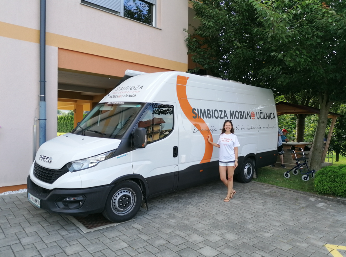 Simbioza Mobiln@ je PRVA POTUJOČA UČILNICA V SLOVENIJI, s katero v Simbiozi preko najsodobnejših digitalnih izobraževalnih pobud in iniciativ približajo uporabo IKT orodij starejšim občanom (65+), ki se želijo naučiti uporabe računalnika in pametnih telefonov, kot tudi starejšim odraslim (50+), ki so iskalci zaposlitve ali zaposleni, ki do sedaj niso imeli dostopa do spoznavanja digitalnih veščin.