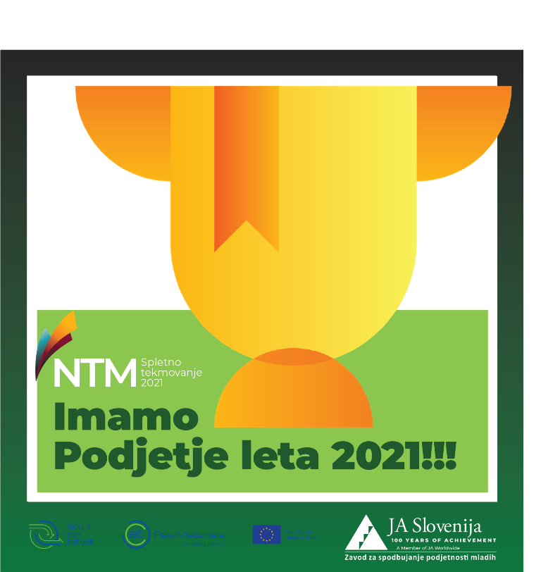 Finale tekmovanja so izvedli v petek, 7. 5. 2021, kjer so razglasili letošnje nagrajence. Izredno veseli so, da vam lahko sporočio, da je častni pokrovitelj tekmovanja predsednik Rebublike Slovenije g. Borut Pahor. Prav tako je dogodek podprl Minister za gospodarski razvoj in tehnologijo g. Zdravko Počivalšek in direktor Urada za RS za intelektualno lastnino dr. Vojko Toman, ki sta dijake in učitelje spodbudila tudi s kratkim nagovorom. V letošnjem le so že drugo leto vključeni v projekt Skills for the Future v partnerstvu z EIT Raw Material in JA Europe, preko katerega dijake dodatno izobražujejo dijake in profesorje s področja krožnega gospodarstva in surovin ter jih spodbujajo k ustanovitvi podjetij na omenjeno tematiko. S tem namenom je na razglasitvi sodeloval tudi g. Alberto Terezi, koordinator projekta, ki je poudaril pomen izvajanja omenjenega projekta.
