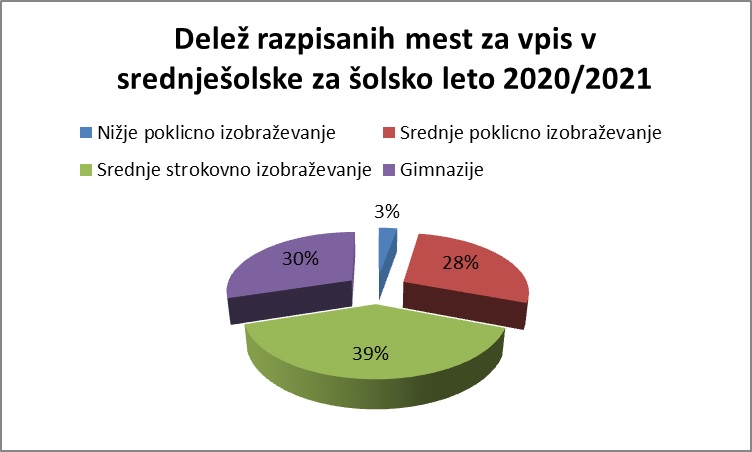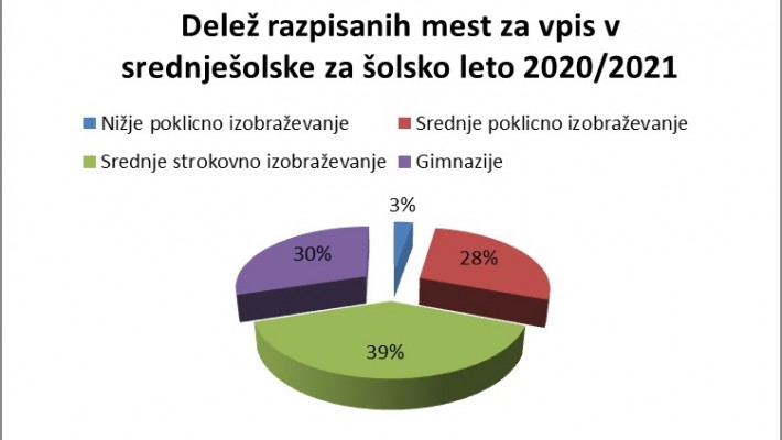 Ministrstvo za izobraževanje, zananost in šport je na svoji spletni strani objavilo razpis za vpis v srednje šole in dijaške domove za šolsko leto 2020/21. Osnovno šolo v letošnjem šolskem letu zaključuje 18.053 učencev in učenk (lani 17.684), ki bodo lahko kandidirali na skupno 23.782 (lani 23.756) vpisnih mest na srednjih šolah.