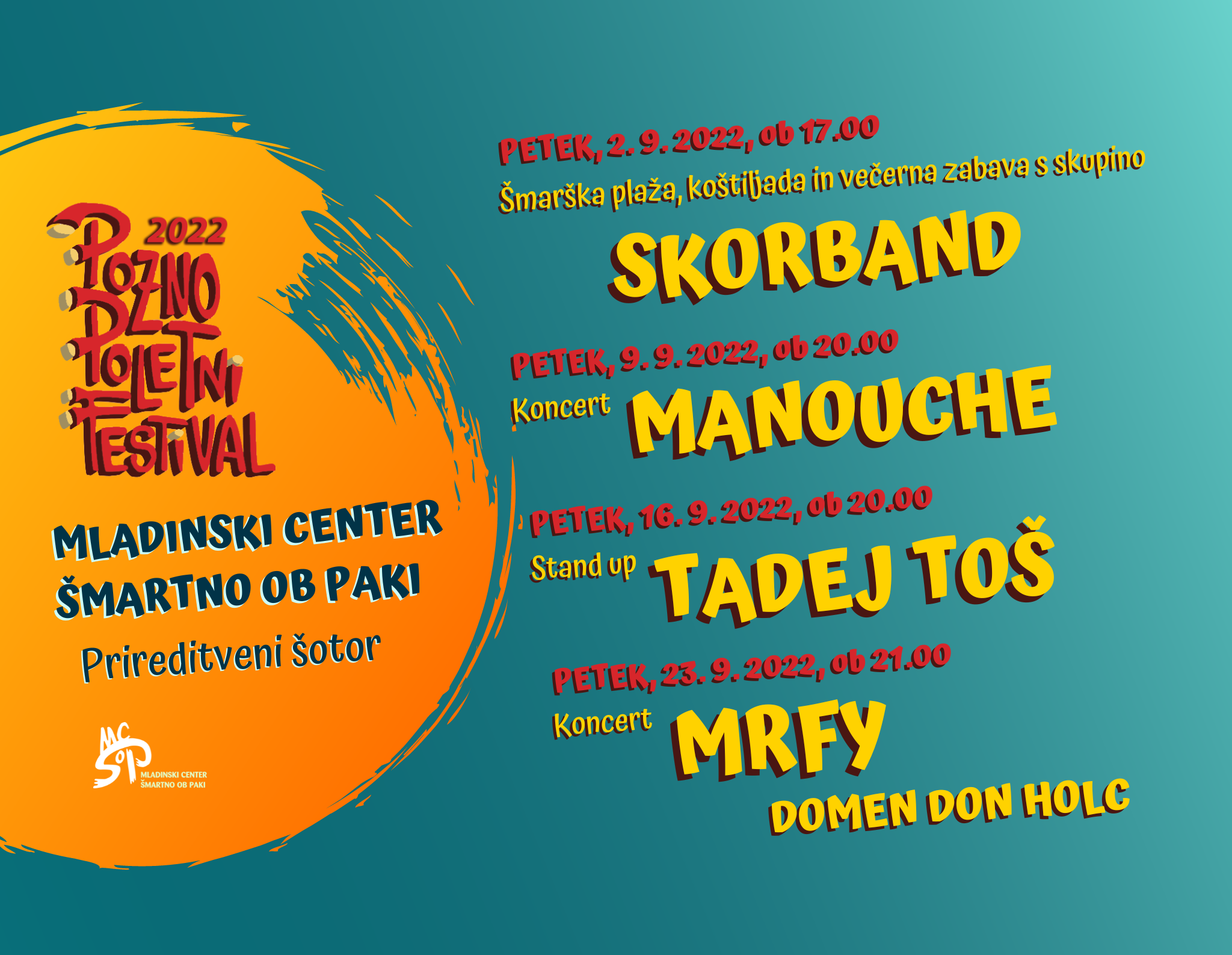 Konec poletja v Šmartnem ob Paki pomeni tudi začetek Poznopoletnega festivala, ki ga tradicionalno pripravljajo v MC Šmartno ob Paki.
