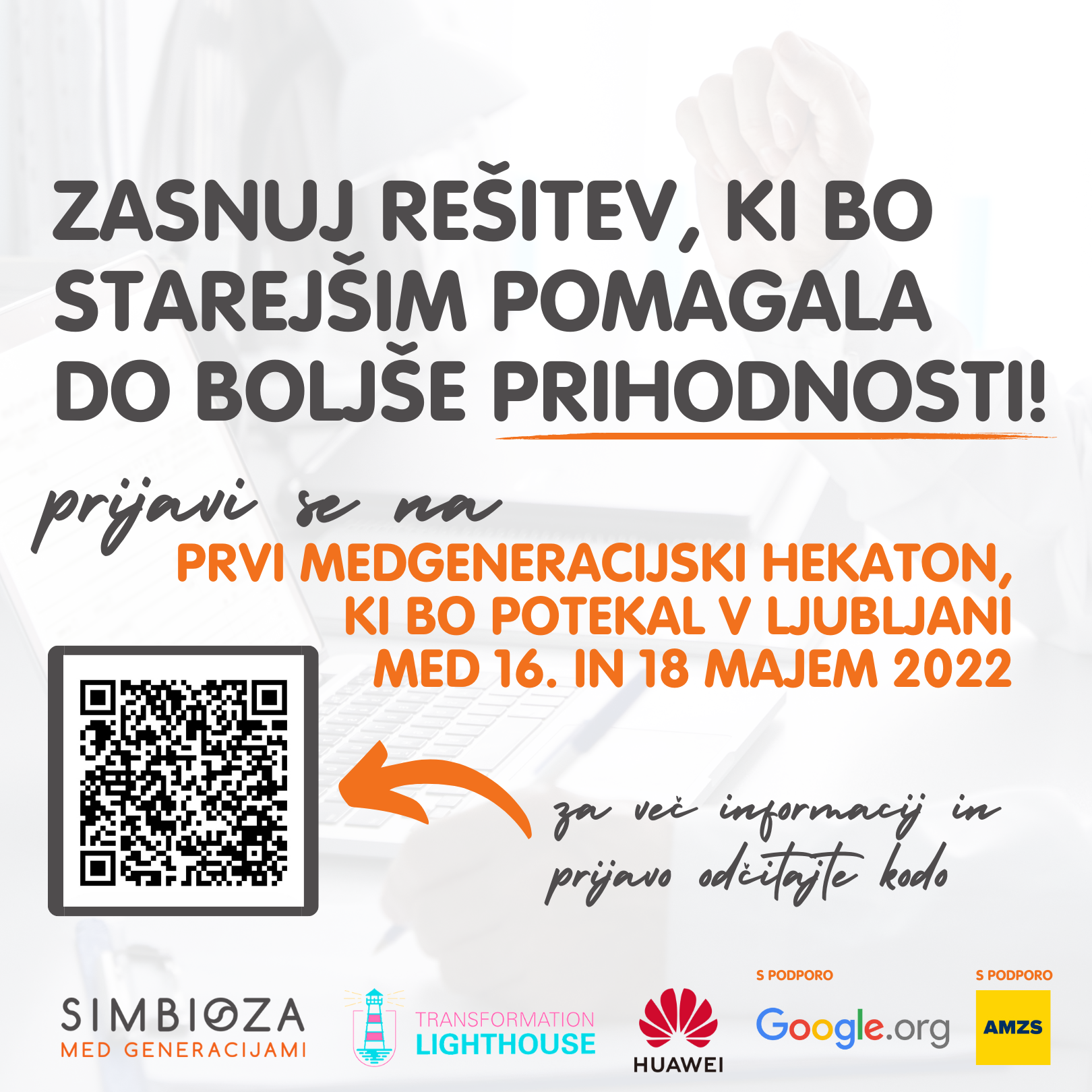 Simbioza Genesis, socialno podjetje, v sodelovanju s Transformation Lighthouse vabi na Simbiozin prvi medgeneracijski hekaton, ki bo potekal med 16. in 18. majem 2022 med 9. in 17. uro v Ljubljani. Namen hekatona je zasnovati starejšim enostavno rešitev, ki jim bo pomagala k varnejši, bolj zdravi in družabni prihodnosti.