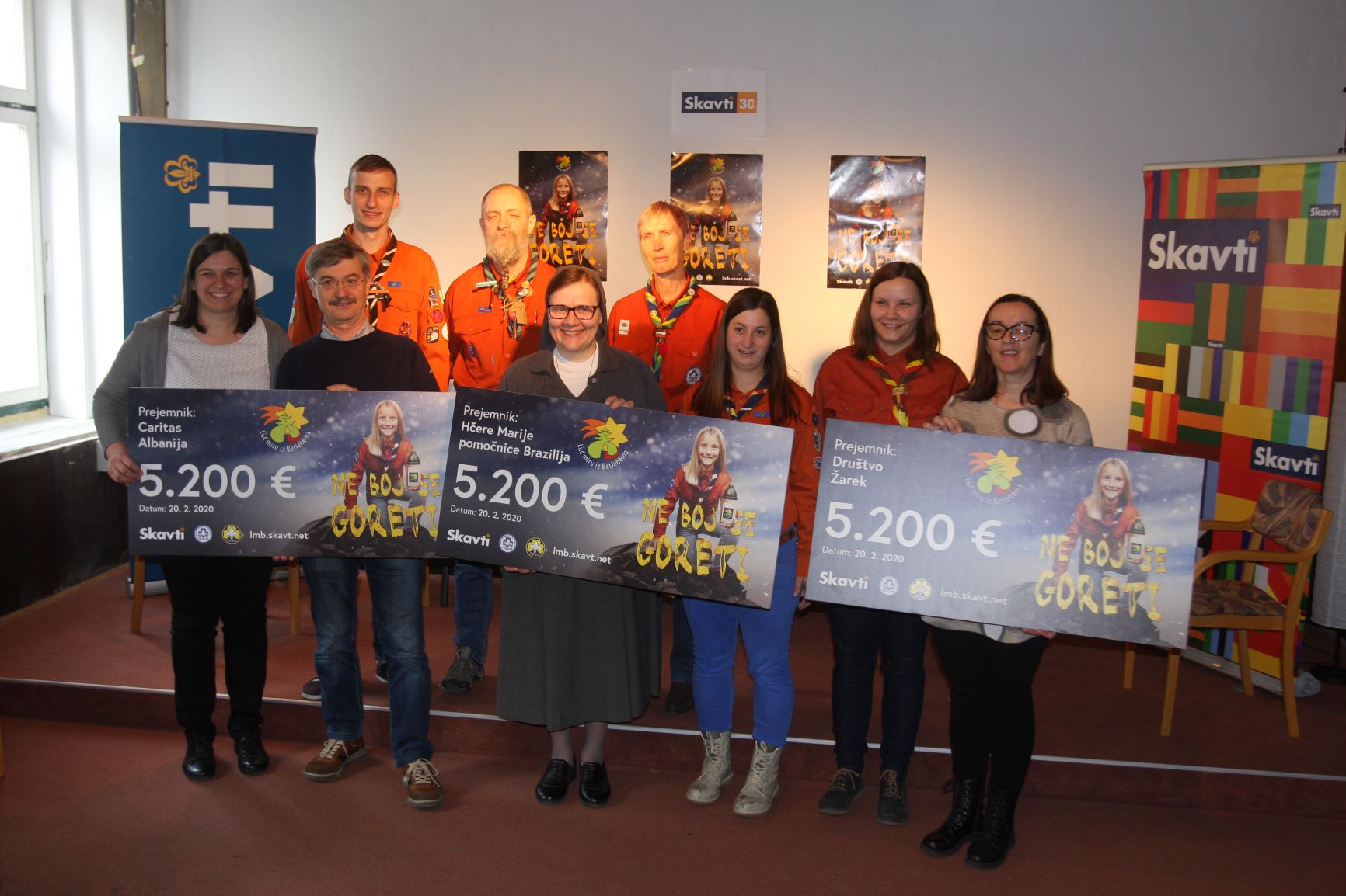 Skavti so v tem času zbrali 15.600 eur sredstev, ki so jih predali trem organizacijam, ki s svojim delovanjem pomagajo otrokom in mladostnikom, v Sloveniji, Evropi in v svetu. Posamična organizacija je prejela 5.200 evrov. Sredstva so tako prejeli predstavniki organizacij iz Društva Žarek, Slovenska karitas v imenu naših misionarjev v Albaniji in sestre Hčera Marije Pomočnice v imenu misijonark, sester salezijank iz Brazilije.