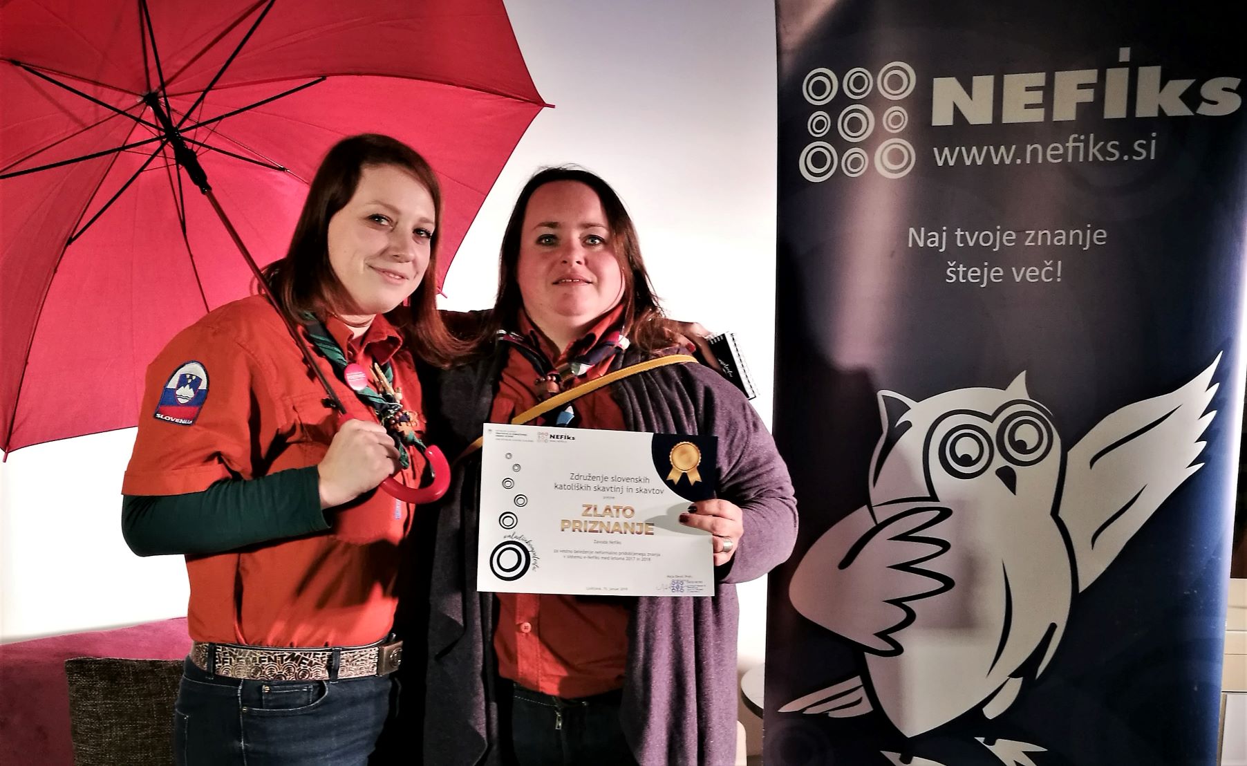 Združenje slovenskih katoliških skavtinj in skavtov (ZSKSS) je 15. januarja 2019 prejelo zlato priznanje Zavoda Nefiks za vestno beleženje neformalno pridobljenega znanja v sistemu e-Nefiks med letoma 2017 in 2018.