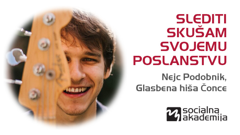 Nejc Podobnik skupaj z bratom Blažem vodi Glasbeno hišo Čonce, nenavadno glasbeno šolo s še bolj nenavadnim imenom, ki deluje v Antonovem domu na Viču. Kot mlada oseba s svojim delom lahko predstavlja navdih mnogim, ki želijo s svojim življenjem dodati edinstven prispevek k boljšemu svetu.