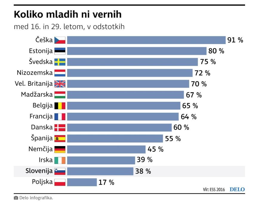 Evropa v zadnjih desetletjih skoraj povsod pospešeno izgublja vernike. V Sloveniji je delež mladih med 16. in 27. letom, ki se prištevajo h katoliški veroizpovedi, po podatkih raziskave mariborske Filozofske fakultete v sodelovanju s fundacijo Friedrich Ebert, od leta 2000 z 72 odstotkov padel na 52 odstotkov v letu 2017.