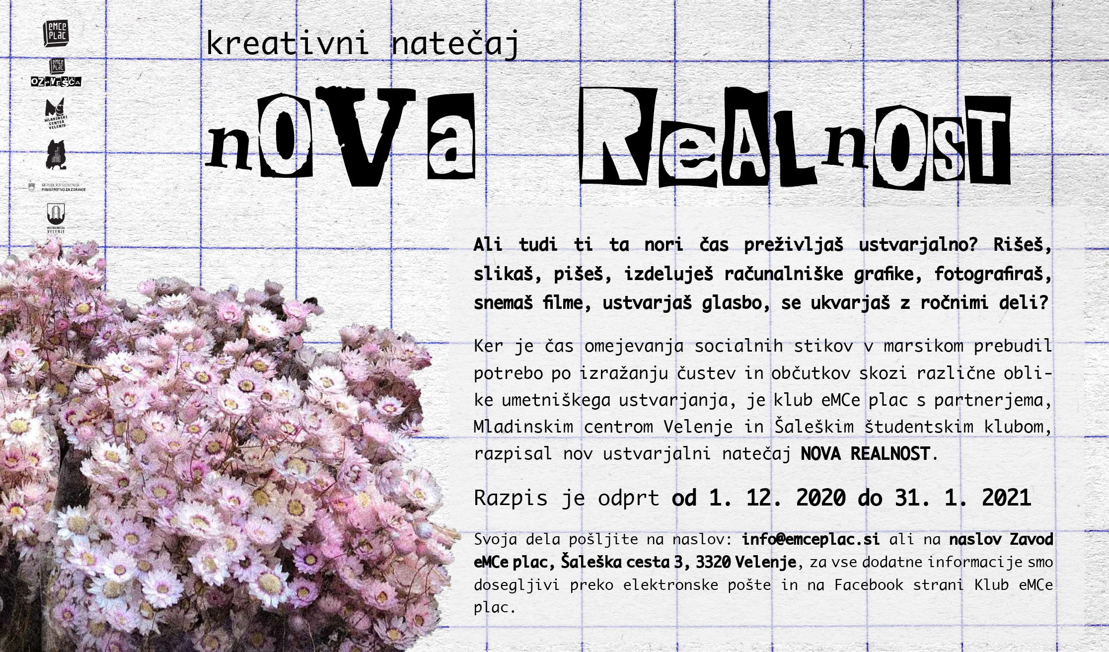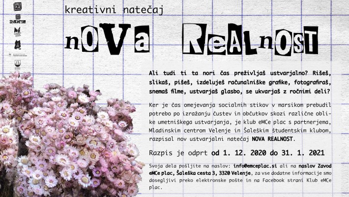 Še vedno zbirajo knjižne predloge, ki jih lahko pošljete preko elektronske pošte pa v sporočilo na družbenih omrežjih. Izvedla se bo praznična edicija Reuse delavnice, vsak dan se na družbenih omrežjih odpre novo presenečenje oziroma naloga v eMCe adventnem koledarju, skupaj s Šaleškim študentskim klubom bodo promovirali projekt Maske mamo čez nos, organizirali Pub Quiz in nadaljevali s ciklom Uporabnih znanj. Do konca leta še poteka športni izziv, nagrade bodo podelili za največ vzponov na Koželj in za najboljšo fotografijo s poljubnega vrha. Ker je čas omejevanja socialnih stikov v marsikom prebudil potrebo po izražanju čustev in občutkov skozi različne oblike umetniškega ustvarjanja, še posebej vabijo k sodelovanju na kreativnem natečaju "Nova realnost", ki bo potekal do konca januarja pod okriljem programa eMCe plac ozavešča.