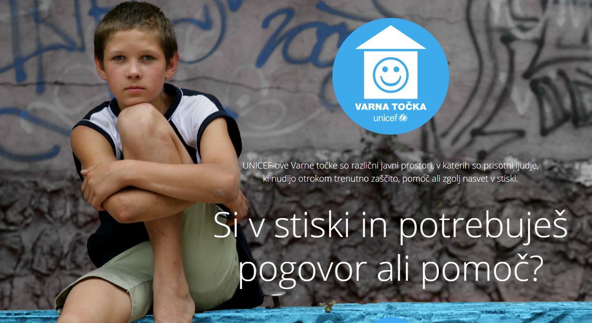 - UNICEF Slovenija: 031 510 200. Če ne veš, na koga se obrniti, lahko pokličeš na to številko, ki bo do nadaljnjega UNICEF-ova "telefonska" varna točka, vsak dan od 9.00 do 17.00. Sogovornica ti bo pomagala pri nadaljnjih korakih oz. bo težavo posredovala naprej pristojnim institucijam, kadar bo to potrebno. O različnih stiskah in reševanju le-teh si lahko pogledaš tudi tukaj.
