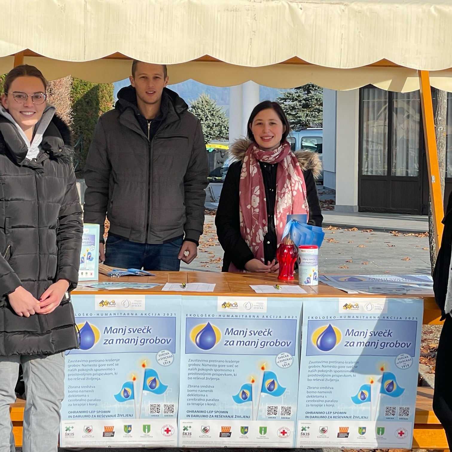 Ljubljana, 3. 11. 2021 – Zveza študentskih klubov Slovenije (Zveza ŠKIS) se je tudi letos s svojimi študentskimi klubi pridružila ekološko-humanitarni akciji Manj svečk za manj grobov. Akcija je potekala na pokopališčih v več krajih po Sloveniji. Skupaj je bilo v preteklih dneh na pokopališčih zbranih 60.375 evrov.