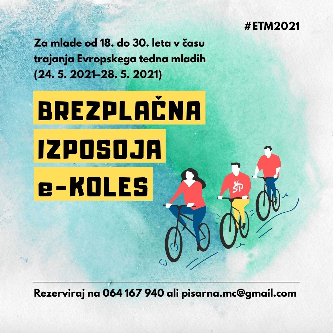 V Mladinskem centru Šmartno ob Paki se pridružujejo obeležbi Evropskega tedna mladih 2021, ki bo letos potekal od 24. do 30. maja. V ta namen so se odločili ponuditi možnost brezplačne izposoje e-koles za mlade.