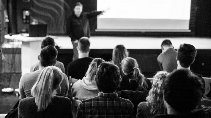 Na prvem srečanju je dijake in ostale goste nagovoril Ciril Oberstar, magister filozofije, urednik revije Ekran in sodelavec založb Sophia in ZRC-Sazu. S pomočjo filmov, kot so Veliki diktator Charlieja Chaplina, To be or not to be Ernsta Lubitscha in Vernik Henryja Beana, je ponudil vpogled v mehanizem fašistične propagande in sistema.