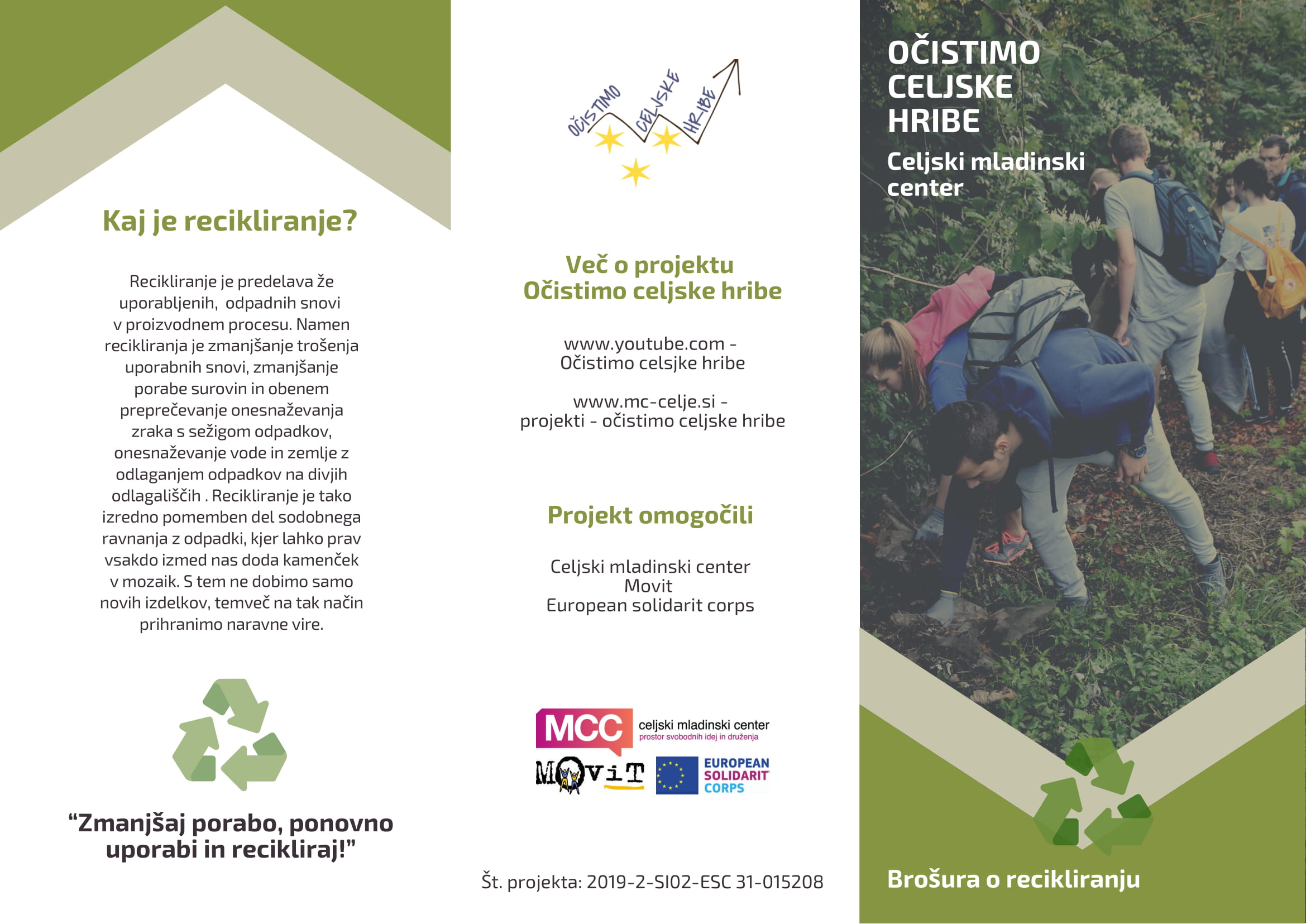 V okviru projekta "Očistimo celjske hribe" izdali brošuro o recikliranju