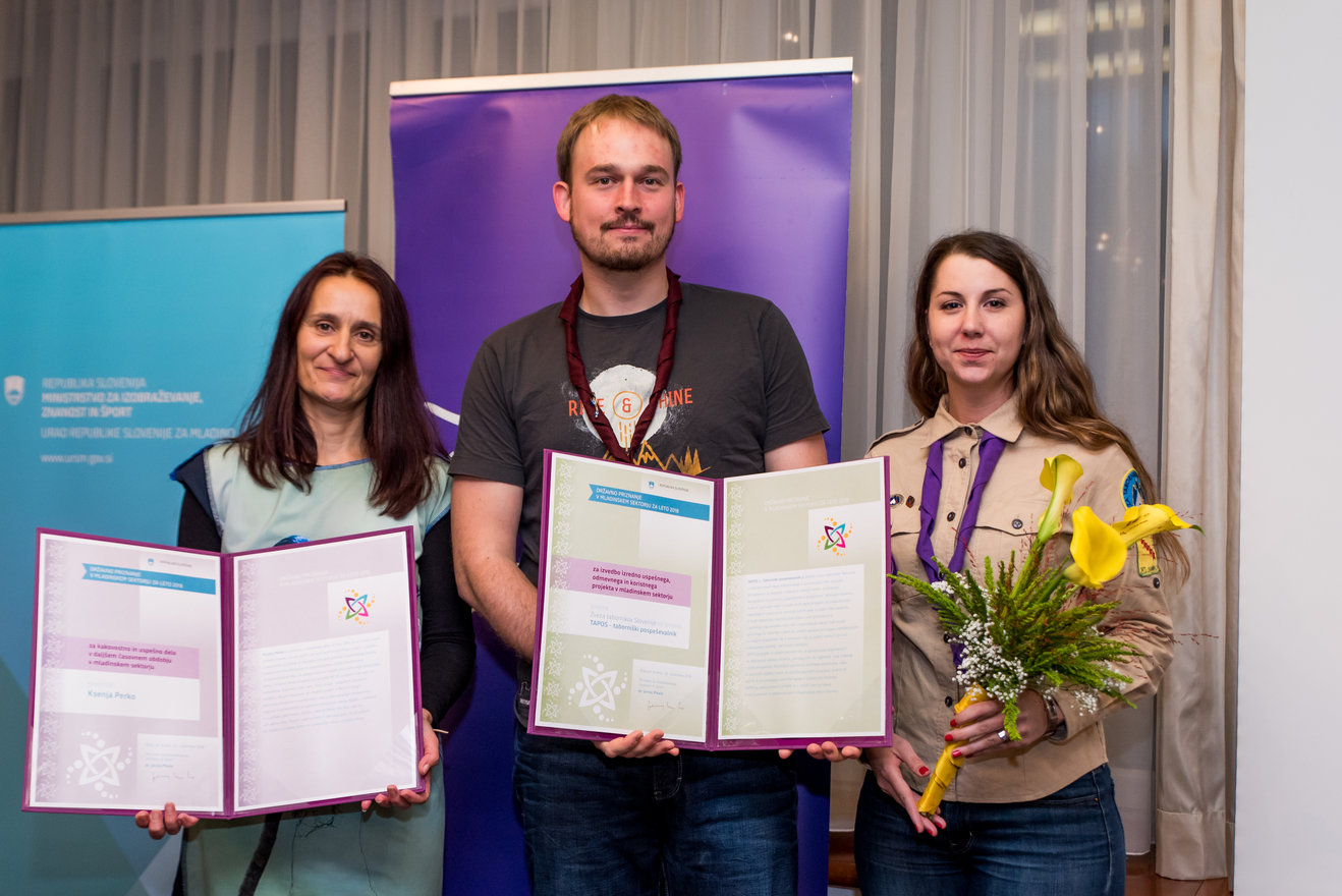 - državno priznanje za prispevek k uveljavljanju mladinskega sektorja: podeljuje se pravnim osebam, lahko tudi več fizičnim ali pravnim osebam, če je jasno razvidno skupno delovanje pri projektu. Podeljuje se za programe ali dlje časa trajajoče aktivnosti, ki presegajo zgolj zaokroženo obliko projekta,