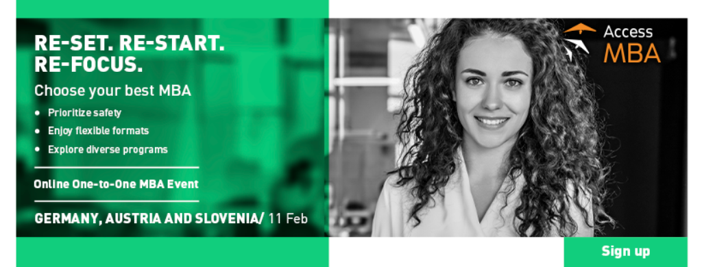 - strokovni poslovni vpogledi in spletni seminarji za sprejem na MBA