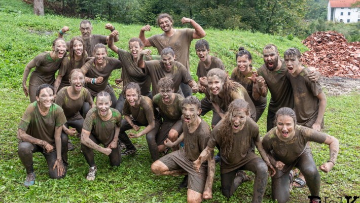 Sledil je najbolj vznemirljiv del dneva – oviratlon. Mladi so se v kar 70 ekipah druga za drugo zapodili po progi, na polni izzivov, kot so mreže med drevesi, zipline, premetavanje traktorske gume, skupno skakanje v velikih vrečah, brodenje po ledeno mrzli Želimeljščici, tek po blatu, hoja po vrvi čez potok, plezanje čez leseno steno, plazenje po blatu in za konec še dolga blatna drča. Za še boljše počutje in polno izkušnjo tega dne pa je poskrbel tudi dež, ki je skoraj nenehno padal, kar je naredilo progo še toliko bolj zabavno.